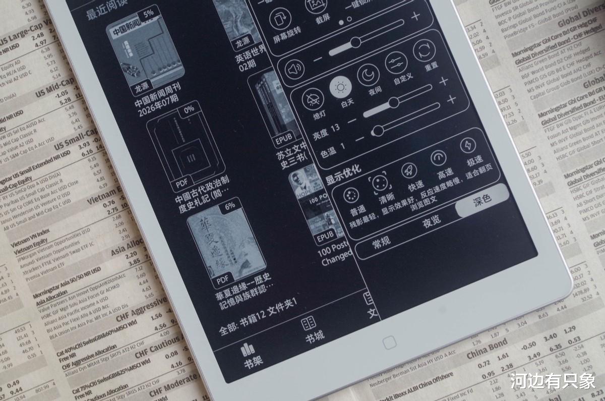 汉王提供了全局深色模式,就是说所有支持反显的APP都能显示,不过大象始终觉得墨水屏不是普通的LCD和OLED屏幕,这种反显的模式意义不大。