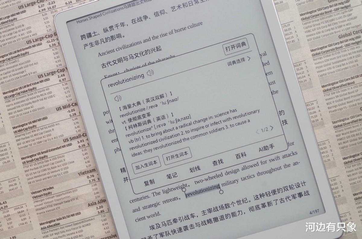 电子书阅读器的一大优势就是可以随时查询词典,而且提供多种不同的词典,再多的专业词汇也不用担心。而且还能把陌生单词加入生词本,方便在生词本APP里面进行附近。