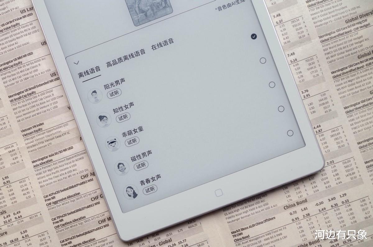 汉王Clear 7锦鲤内置扬声器,看书看累了,还能打开朗读功能,使用听书功能,不论是书库的书,自己上传的书,还是期刊都能听。汉王提供了多种不同的语色,总有一款适合你。