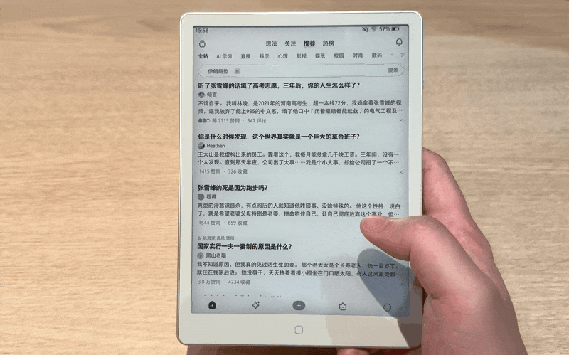 至于刷刷知乎这种瀑布流APP也丝毫没有问题,这既得益于汉王的系统和显示优化,也是Oxide增压瞬浮屏和T2000增压快刷引擎的实力表现。