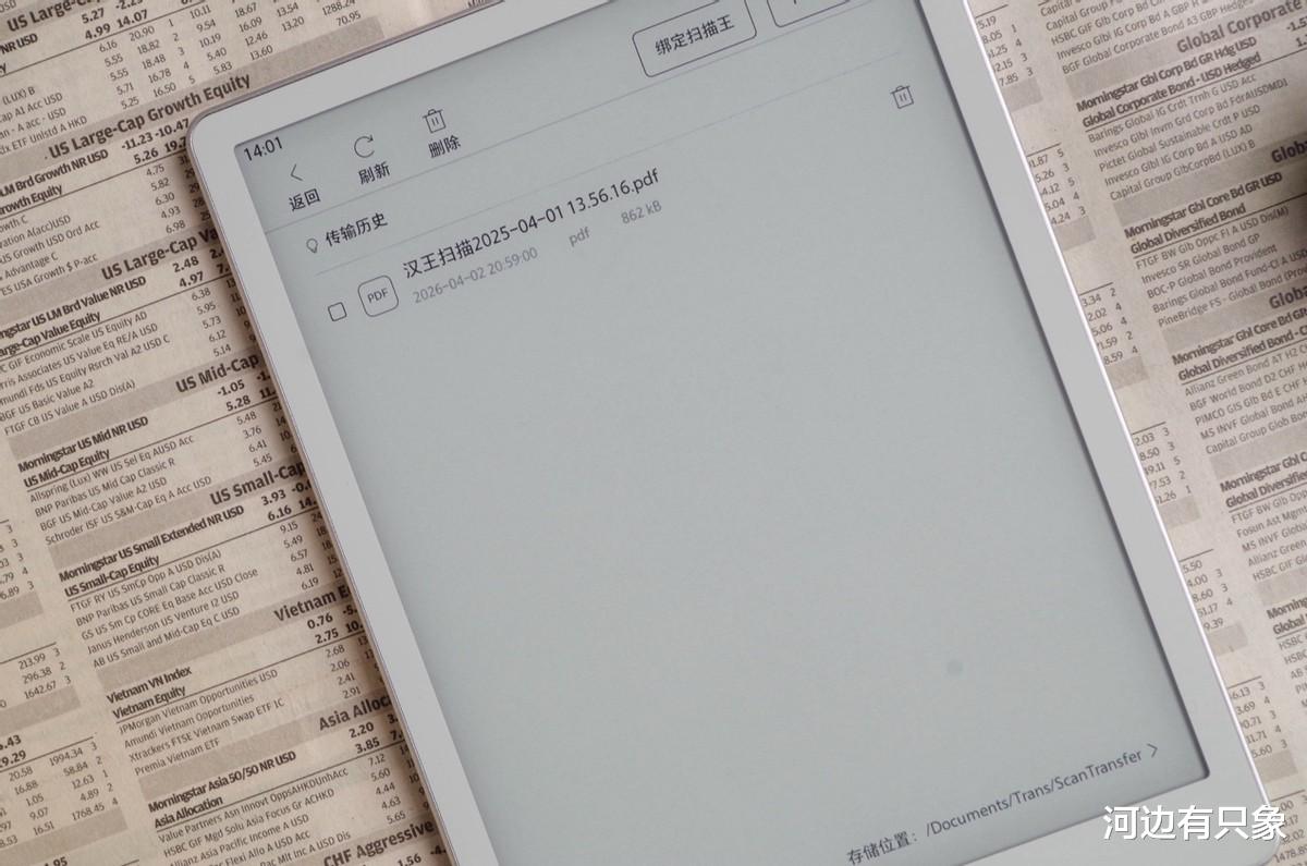 自家生态的汉王扫描王也能把手机平板上的扫描文件传输到锦鲤上,方便随时阅读。