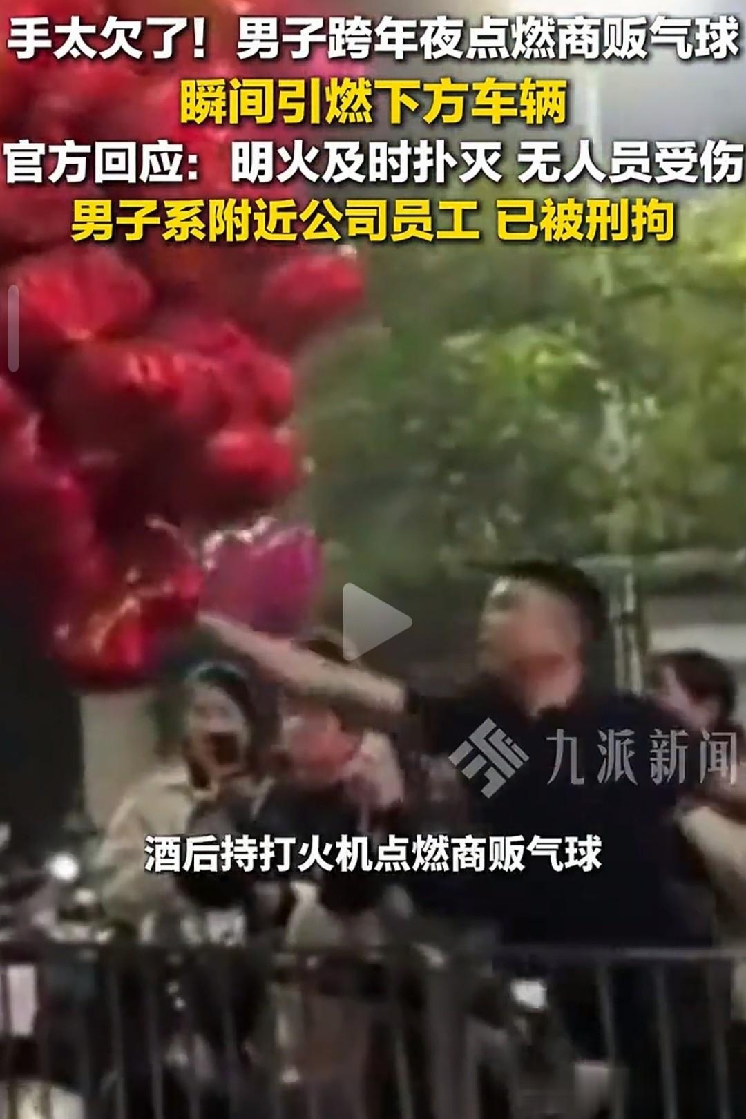 这名男子为了自己图一时的快乐而点燃了商贩的气球,差点让现场的人员受伤,他被警察拘留就是自作自受罪有应得。