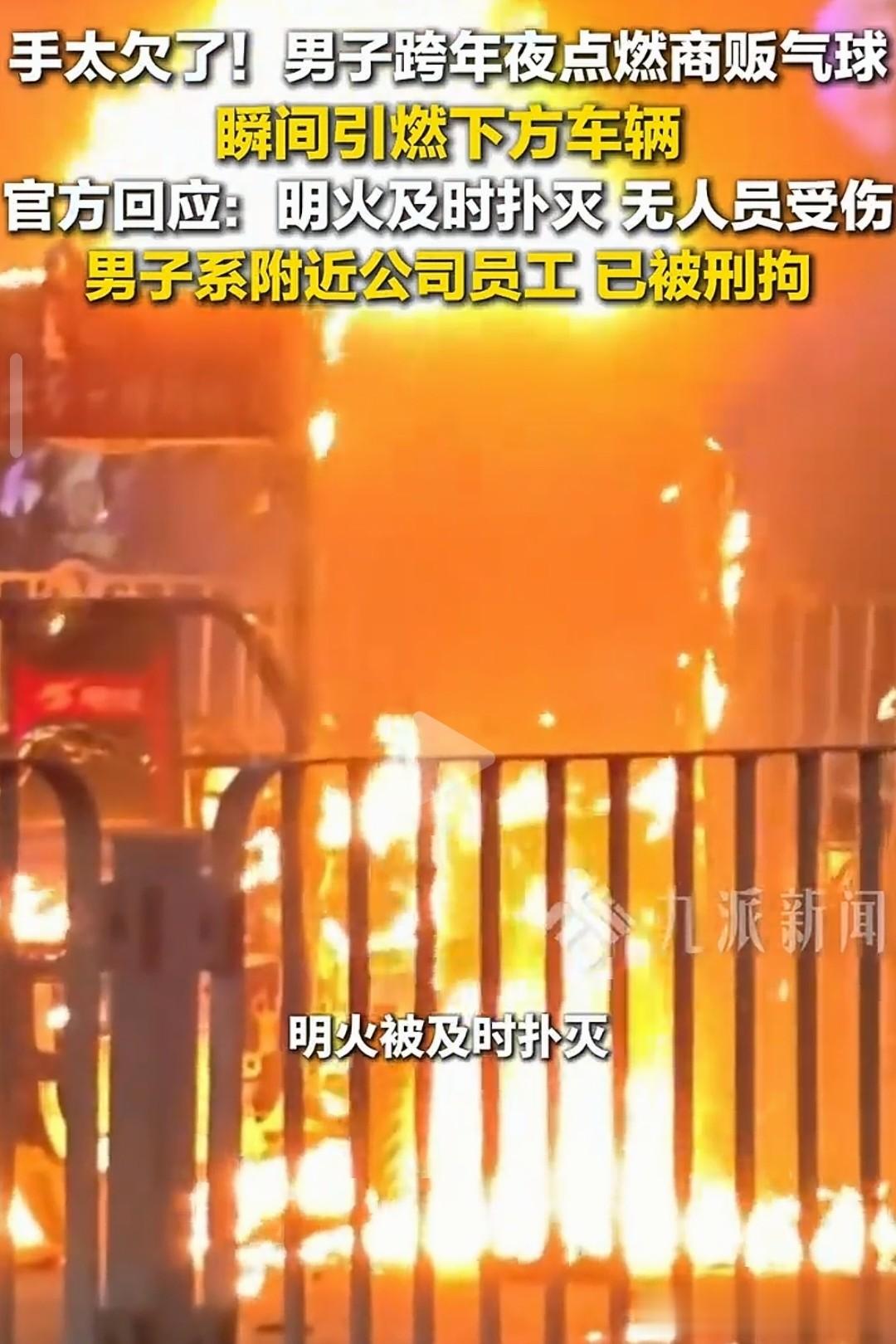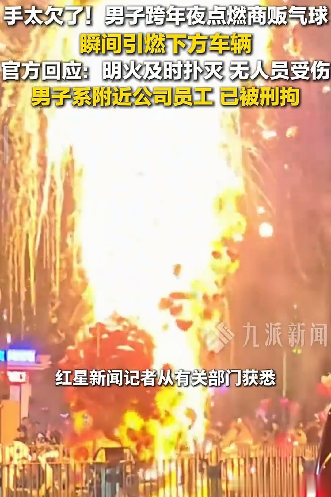 事故发生了后当地的消防员迅速赶到了现场用灭火器扑灭了现场的大火,大家很快就找了纵火的男子,当纵火的男子见到警察后瞬间就怂了,完全没了当初点燃气球的豪横气焰,他还狡辩自己是因为喝酒后才点燃了气球,但是现场的目击者还有监控让他的恶行无所遁形,殊不知酒后纵火的行为就罪加一等,目前男子因涉嫌酒后滋事被警方刑事拘留,男子的结局可以说是大快人心!