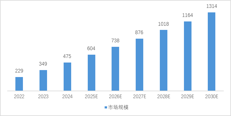 虚拟电厂的市场规模持续增长。2022-2030E 规模从 229 亿元升至 1314 亿元,复合年增长率(CAGR)达 24.4%,属于电力新赛道中的高增长领域;年度增量逐步扩大(2022-2023 增 120 亿,2028-2029 增146 亿),说明行业需求释放节奏在加快。