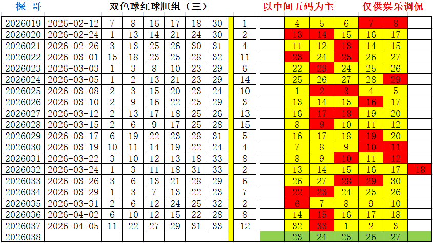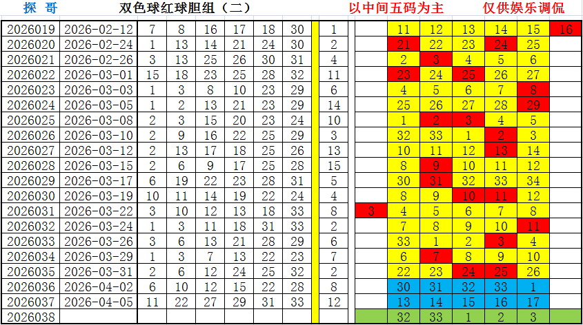 红球胆组二(新数据):32、33、01、02、03,开?;