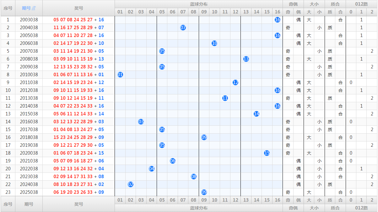 八、历史同期,蓝球开奖号码和走势图:
