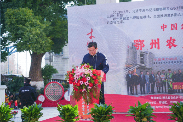 鄂州市委常委,副市长卢辉在致辞中表示,目前鄂州正在抢抓武汉新城和花湖机场两大省级战略叠加机遇,全面推进城乡融合高质量发展,大力发展“临空+农业”。“汇聚湖北、通达世界”的愿景正在逐步现实。