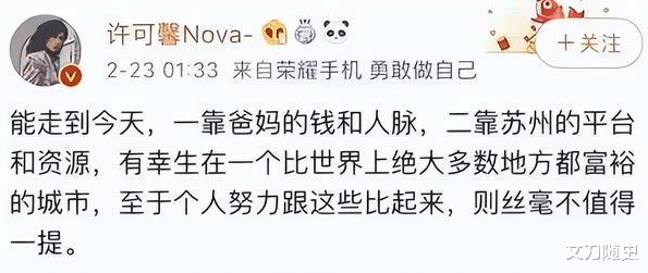 许可馨作为一名留学生,从她发的动态来看,她经常去不同的国家旅游,穿着自认为好看的衣服拍照留念。表面上看,和普通的留学生没有什么区别,但是她却无视道德底线,多次污蔑我国英雄烈士。她认为,我们国家非常不安全,并称自己永远也不要回国。可是中国是许可馨成长的地方,祖国不仅给她教育,还给她留学的机会。可如今她却忘恩负义,成为人人喊打的”牧羊犬“,这跟她背后的强大背景脱不了干系。