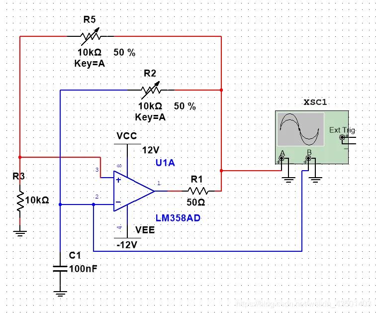 运放工作在正副反馈方式下,产生方波信号
