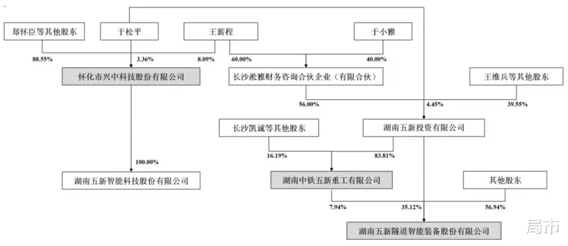 上市公司总部位于湖南长沙,当前总市值为61亿元,实控人王薪程通过五新投资、五新重工等持股平台合计控制上市公司43.06%的股份。