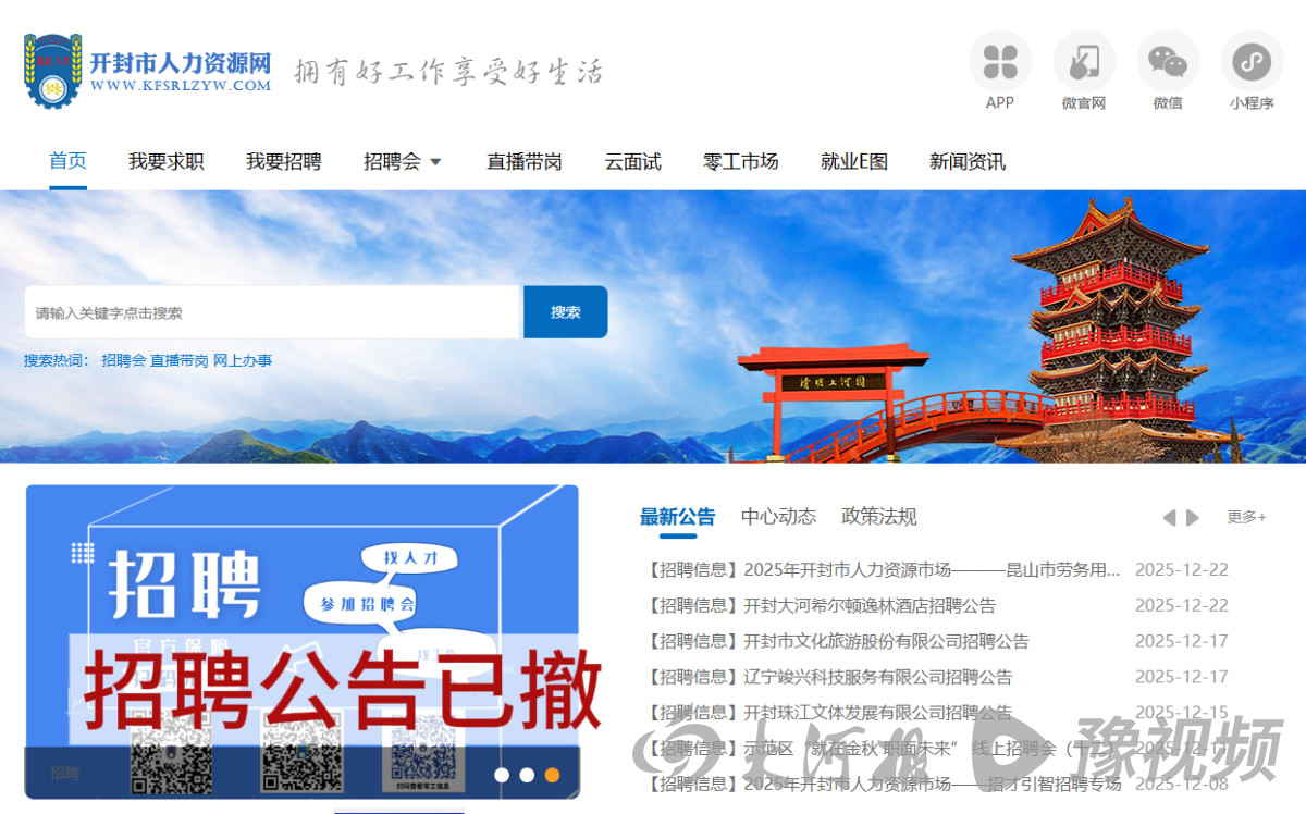 万岁山景区招聘公告(开封市人力资源官网截图)