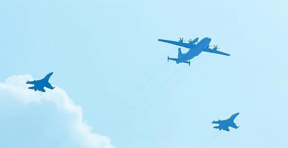 运油-20A与轰-6N、歼-16、歼-20飞机组成加受油机梯队,以预加油状态飞过天安门广场上空。