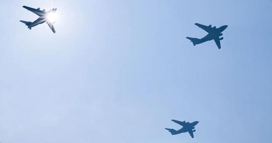 运输机梯队由3架运-20A、3架运-20B运输机编成2个队,以战斗姿态编组,展现我军规模化战略投送能力全面提升。