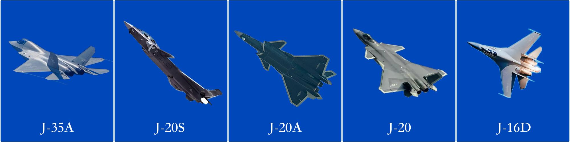 歼击机梯队由歼-35A、歼-20S、歼-20A、歼-20、歼-16D组成。