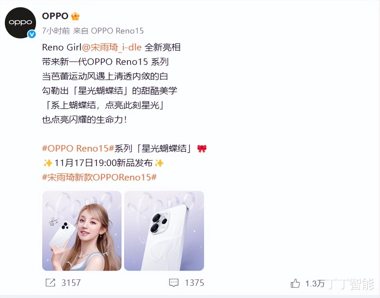 OPPO 官微正式官宣新一代 Reno15 系列,将于 11 月 17 日 19:00 新品发布会。此次新品延续与 Reno Girl 宋雨琦的深度合作,以 “系上蝴蝶结,点亮此刻星光” 为核心主张,将运动芭蕾美学融入产品设计,推出行业首创的 “星光蝴蝶结” 配色。