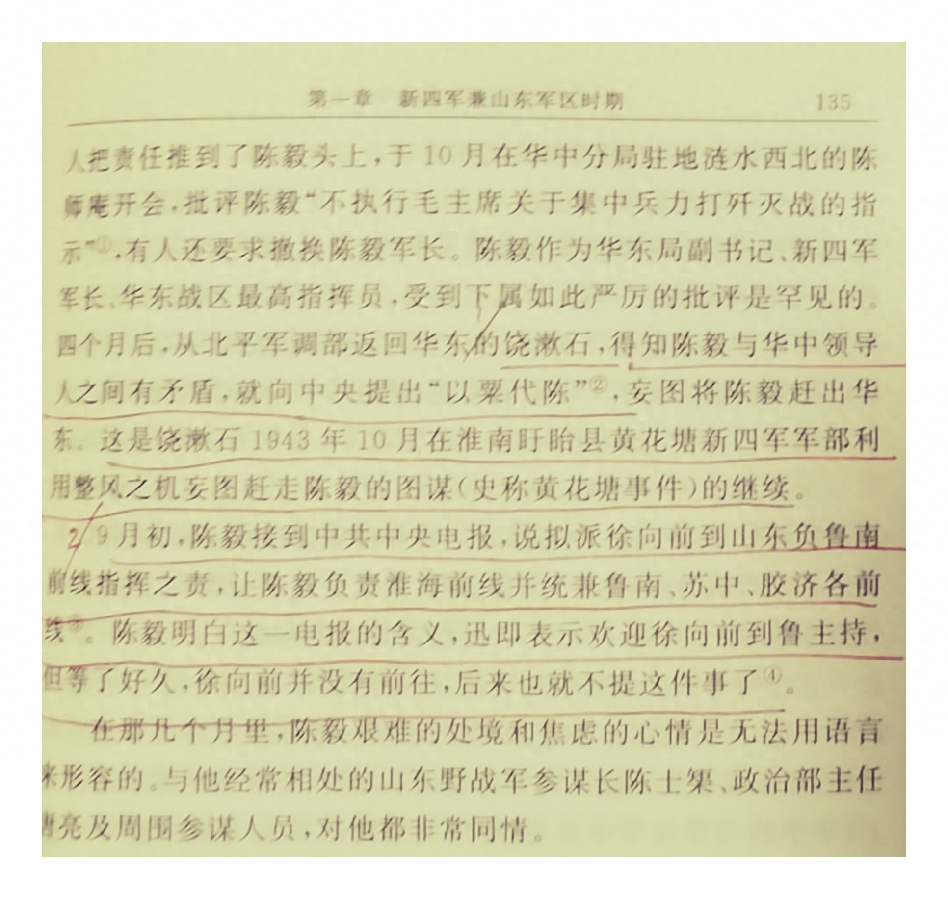 陈毅真正的低谷,是1943年的新四军黄花塘会议及解放战争期间“两淮”失守(1946年9月)后,陈毅遭到华中党政军领导人的强烈批评。这也是陈毅在新四军内部所遭遇的两次排挤。