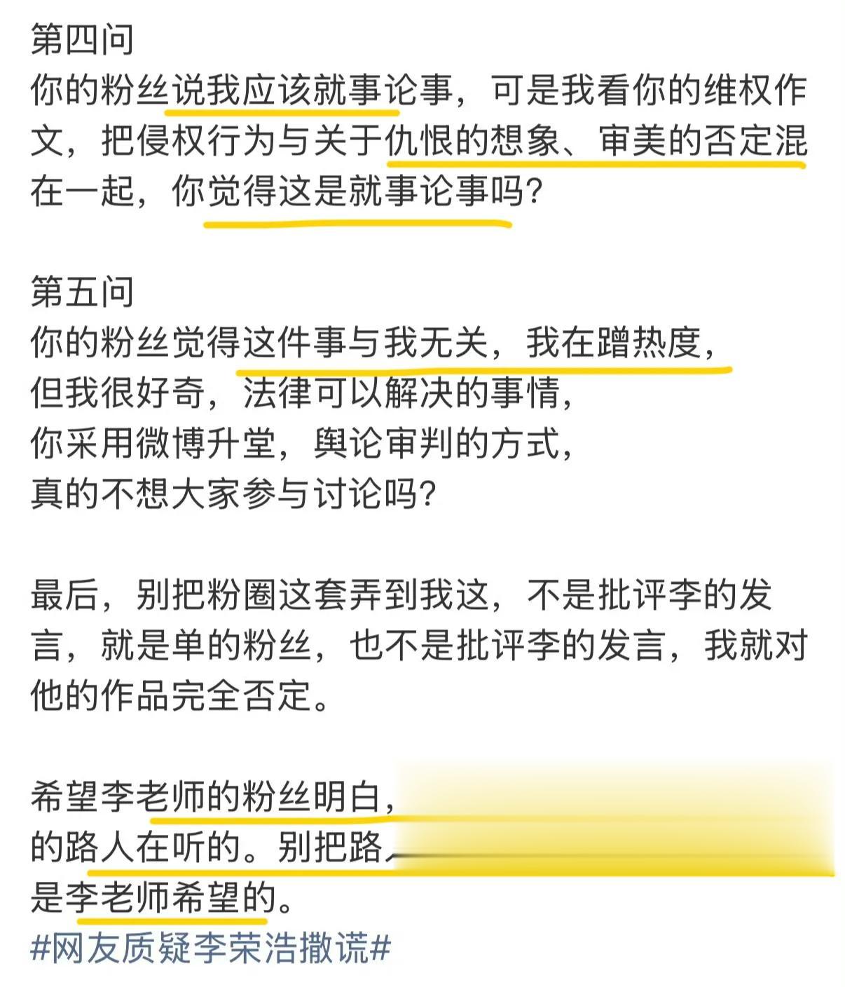 但李荣浩方昨日回应已明确不再做回应,因为此时已经偏离轨道。