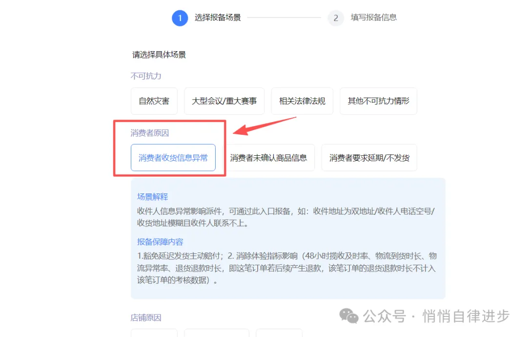 选择原因:消费者原因——消费者收货信息异常