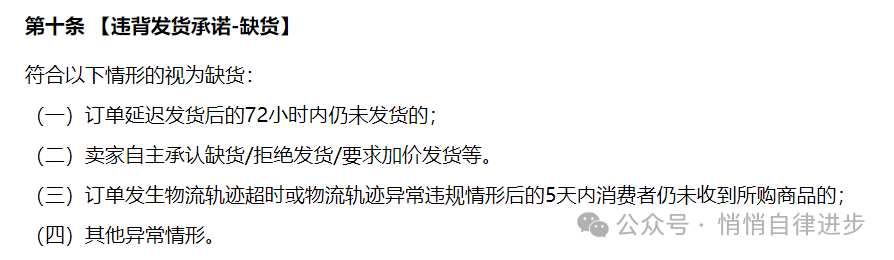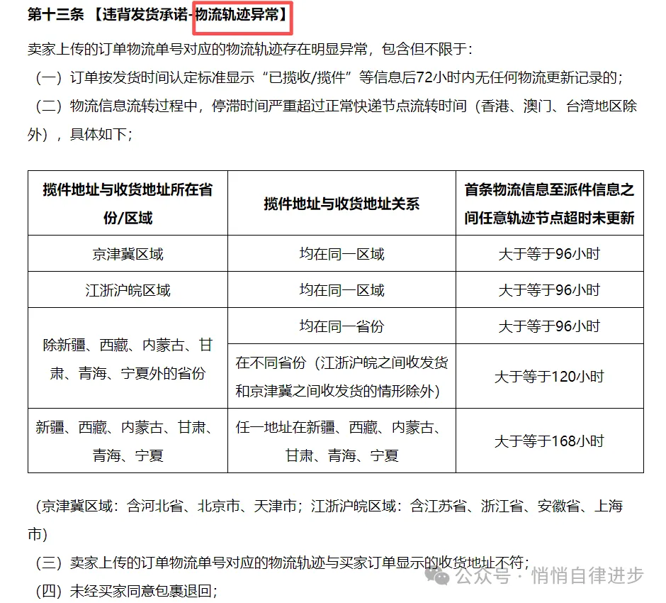 当然啦,你会想那就先填一个运单号糊弄一下,不发货,但是现在的平台规则已经非常严谨了。判定物流轨迹超时或者异常也都会赔付。