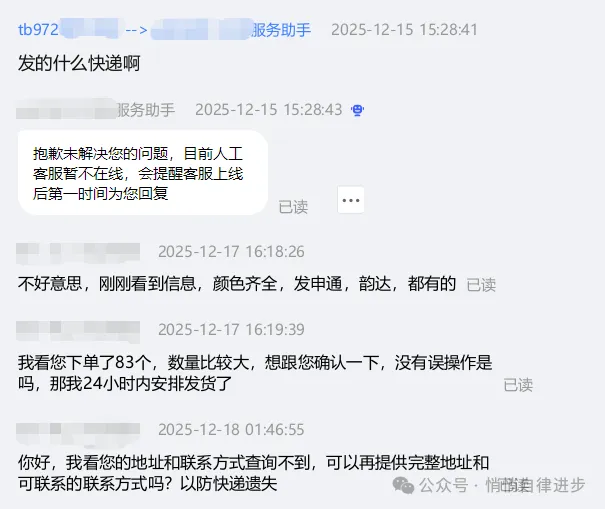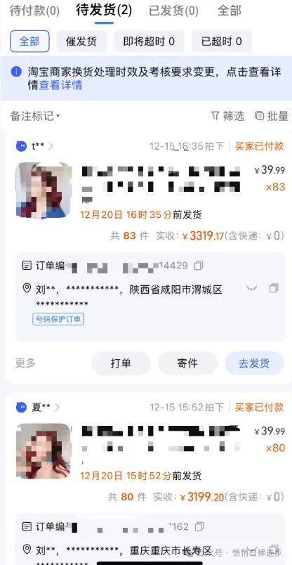 所以只能按时发货。为了以防万一,我还打电话问了一下客户订单是否有误,但是对方接通了之后,一听到是淘宝卖家,问的这个订单,马上就挂断了。没办法,我只能发货,先发了两个试试情况,如果对方没有问题,正常接收,我就补发剩下的。结果刚填完运单号,对方就申请退货退款了,两单同时取消。我就知道,所以马上通过了。最近不太想运营账号,为了避免这些问题,我把所有链接先下架了。