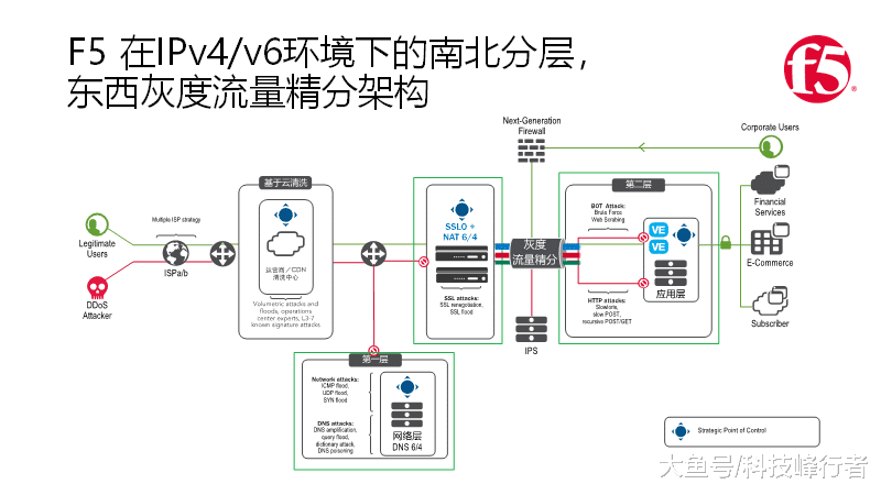 为此,F5创新性的提出了在IPv4/v6环境下的南北分层,东西灰度流量精分架构应对这样的安全形势变化,这也是F5在年初的攻防大战中取得胜利的根本原因。