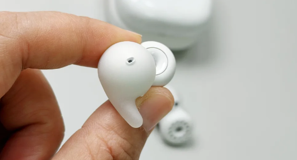 佩戴体验:外观是“甜甜圈”设计,是突破了传统设计的新佩戴方式,并且单耳的重量是5.1g,拿在手上就像是一个鹌鹑蛋的重量,但是它的佩戴方式还是跟入耳式耳机有点类似的,是靠侧翼撑架提供额外支撑,佩戴舒适契合人体耳部结构