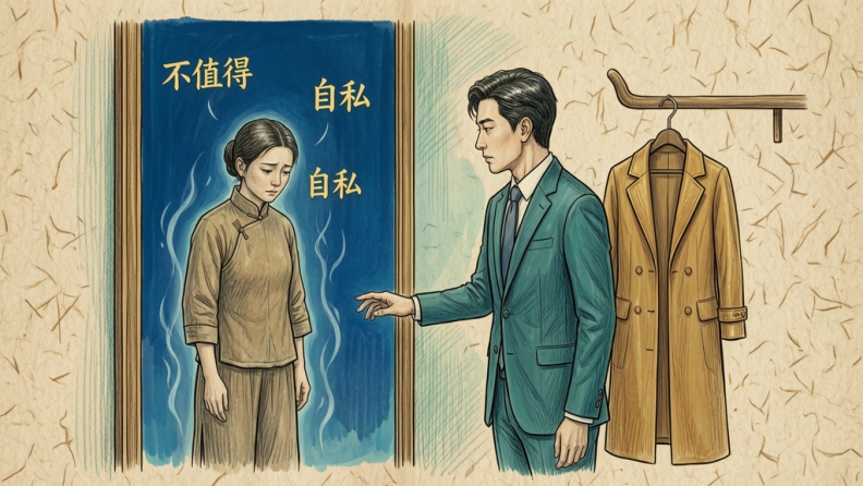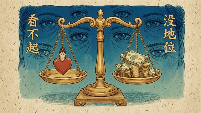 3.恐惧警告类:“没有钱,你以后会被人看不起。”“女孩子要有钱,不然婚后没地位。”或“女孩子不要太有钱,没人敢要。”“男人没钱就是废物。”信息是:钱直接决定你是不是“配得上被尊重的人”。它不是中性的资源,而是一份“人生合格证”。这种话听多了,很容易导致:把自尊压在收入和存款上,任何财务波动都变成对自我价值的否定;或者在关系中,过度依附于“给你钱的人”。