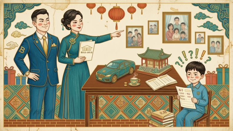 2.炫耀型:钱=面子和优越感。这种家庭不一定真的很富有,但钱被用来不断比较:亲戚聚会时,大人会刻意提谁家买了新房、谁家买了车;用品牌、装修、学校来证明“我们家不差”;对外特别要强,对内则容易用“你要争气,别给我丢人”来要求孩子。在这样的环境里,孩子很容易学会:把“有钱”当成安全感和存在感的主要支撑;对“没钱”“穷”有极强的羞耻感,甚至不敢承认自己目前的真实状态;走上社会后,也容易陷入“买东西不是因为需要,而是为了证明自己”的消费模式。