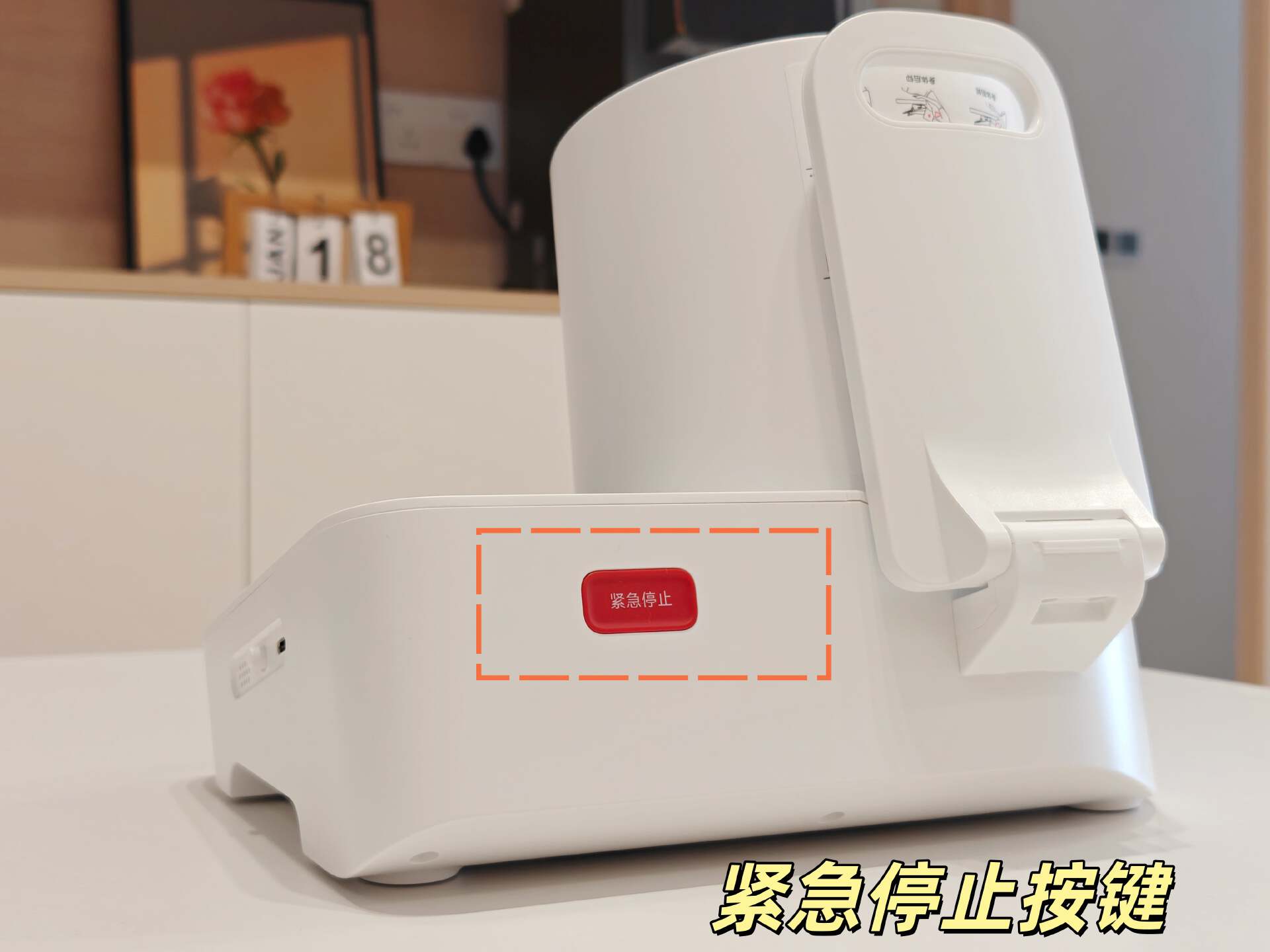 在血压计的顶部位置,还设有一个醒目的“紧急停止”按键,无论是测量时突发不适,还是临时有其他急事,我们都能随时一键暂停,从容处置。