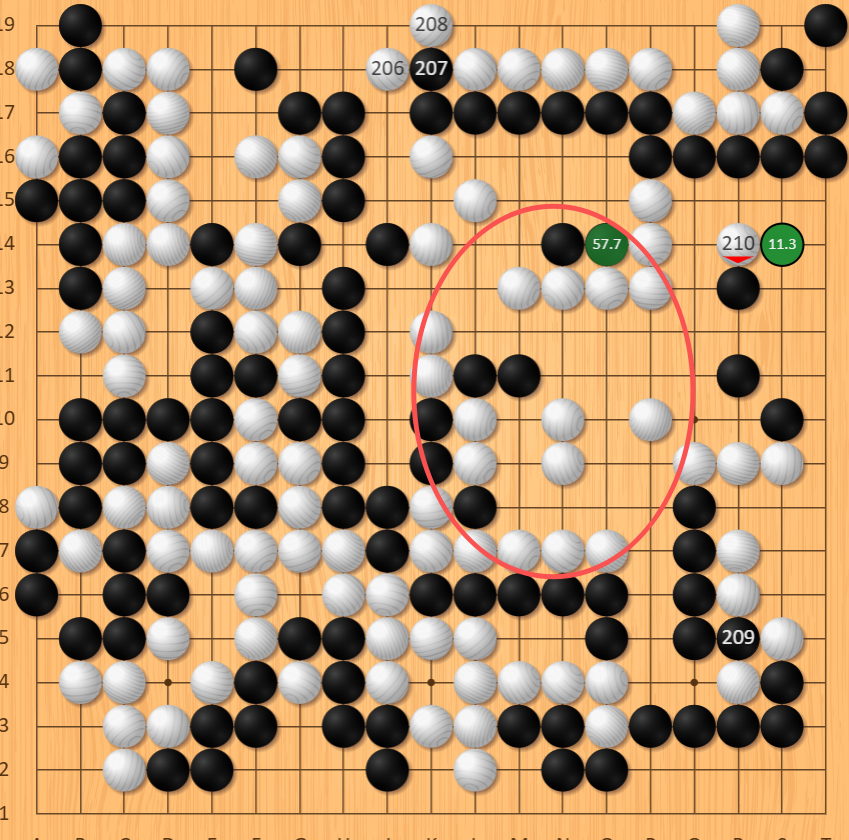 90手之后,申真谞在左边判断失误之后,白棋抓住机会随即将与左下相连,赢得了一定的局面优势。不过最终关键的激战在右边!