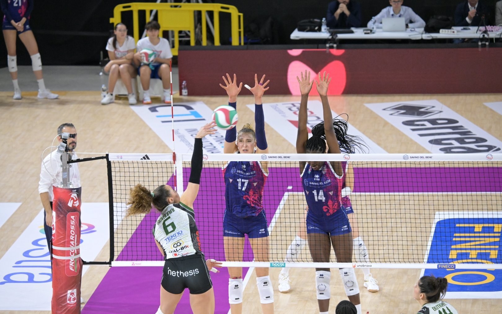 最终科内利亚诺在先丢一局的情况下,3:1战胜贝加莫晋级,米兰1:3不敌诺瓦拉被淘汰,基耶里和斯坎迪奇都是五局大战晋级的四强,可以看出这四场比赛的过程都是非常的精彩。朱婷这场被首发,但是后排不断被换下,进攻的机会不多,15扣4中1发,拿到了5分,虽然得分不高,但却是三个上场的主攻当中效率最好的,加比的36扣13中2拦6失误被拦,以及尼卡的17扣5中3失误被拦都不如朱婷,因此朱婷的能力其实是毋庸置疑的。