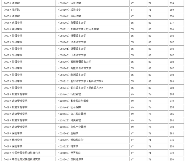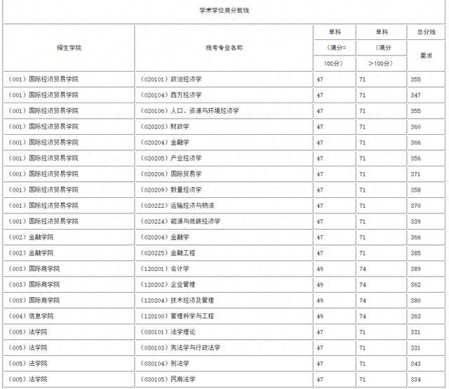 根据2024年我校硕士研究生初试成绩统计结果和各学科专业拟招生计划,在《2024年全国硕士研究生招生考试考生进入复试的初试成绩基本要求》基础上,经学校研究生招生工作领导小组讨论决定,对外经济贸易大学2024年硕士研究生招生考试考生进入复试的初试成绩基本要求如下: