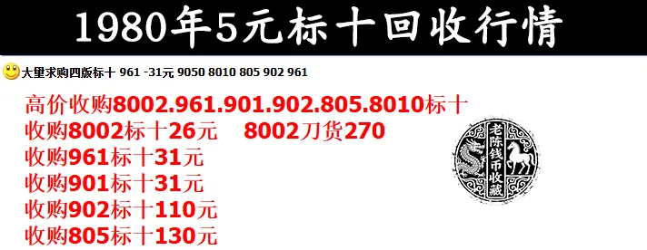 从上面的回收行情报价可以看到,现在标十的80年5元纸币的价值是130元。相当于一张的价值是13元,可想而知,要是手里的散张纸币,价格估计也就在8-10元左右,而且还要是全新的才行。