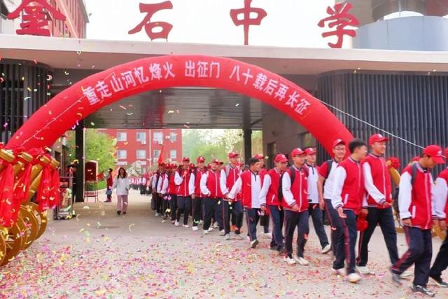 4月17日上午,在校领导一声令下,金石中学2025年红色远足研学队伍踏着晨曦,追光启程。