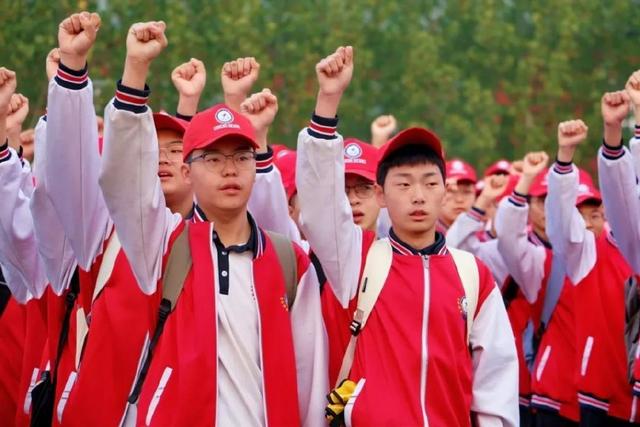 “金石师生,豪情万丈,励志远足,放飞梦想!抗战精神,我来发扬。革命传统,永志不忘!我行!我能行!我一定行!”金石师生誓言铮铮,丹心闪耀,彰显金石学子青春无畏,一往无前的决心!