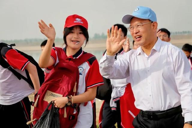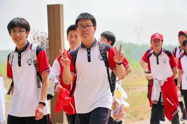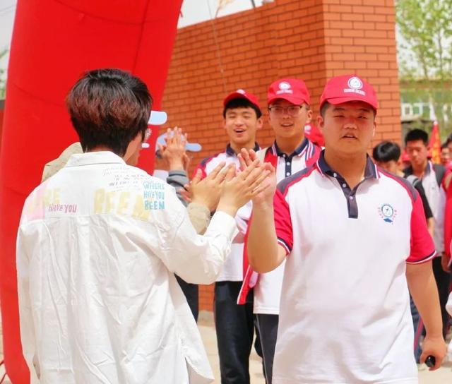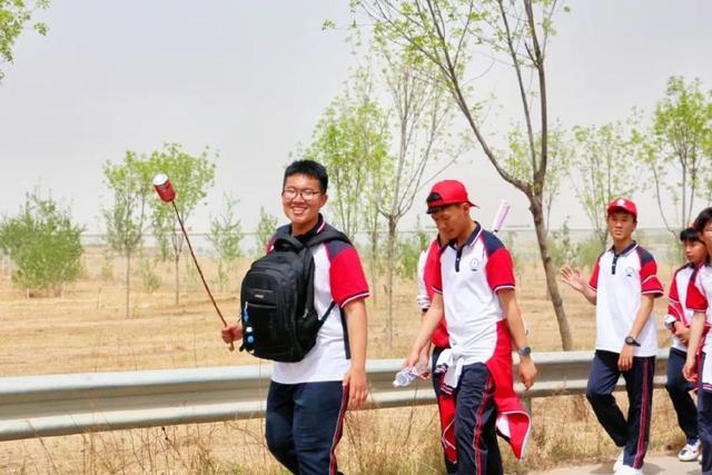 成功到达校园后,同学们与校领导成功击掌,为本次远足刻下功勋章,表扬自己的不放弃!