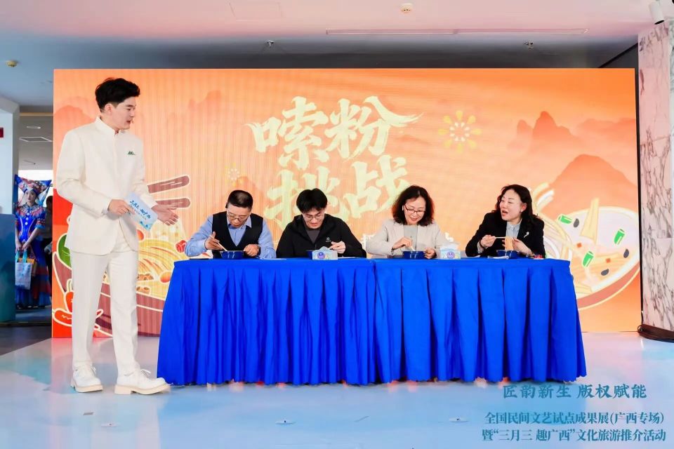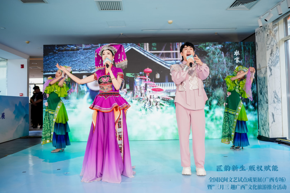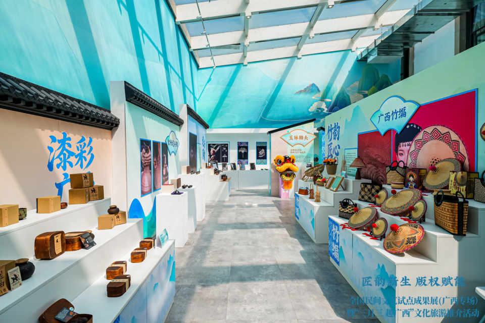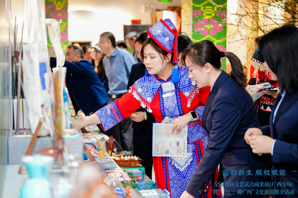 ▲“匠韵新生 版权赋能”全国民间文艺试点成果展(广西专场)暨“三月三 趣广西”文化旅游推介活动