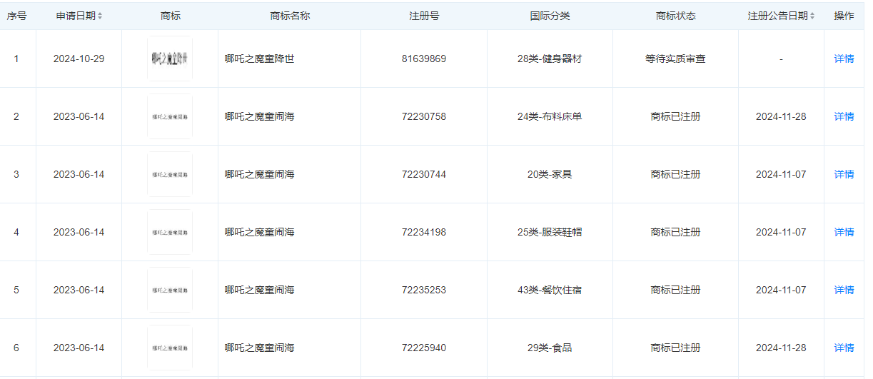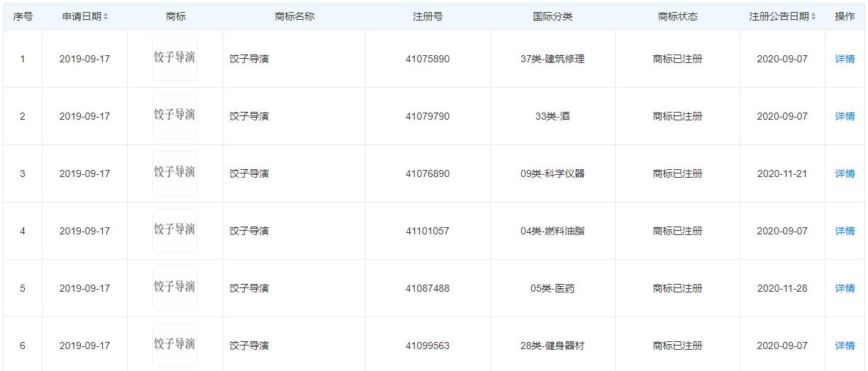 其次是商标注册。光线传媒已经为哪吒2进行商标注册,包括“魔童闹海”和“哪吒之魔童闹海”等多件商标,商标类别基本全部覆盖45类商品或服务类别。哪吒动画系列的导演饺子,也注册了“饺子导演”商标,并做了商标全类别申请,从各个维度上,确保了自身品牌标识的法律保护。