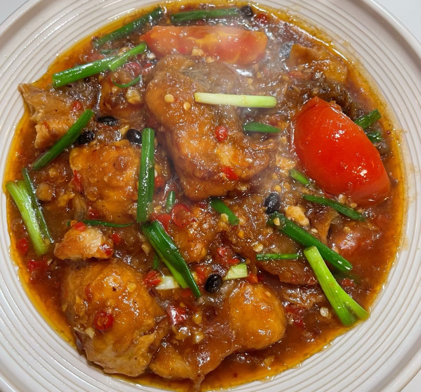 掀盖那一刻,番茄香像“biu”地弹出,鱼块颤巍巍地晃,汤汁鲜红发亮。先别急着吃鱼,舀一勺汤浇在米饭上,酸中带甜、甜里透鲜,零味精却鲜到眉毛打结。鱼肉吸饱番茄,筷子一夹就“蒜瓣”般裂开,却一块不碎。最后务必用锅铲把锅底那层“番茄锅巴”刮下来,焦红微黏,是整道菜的隐藏彩蛋。