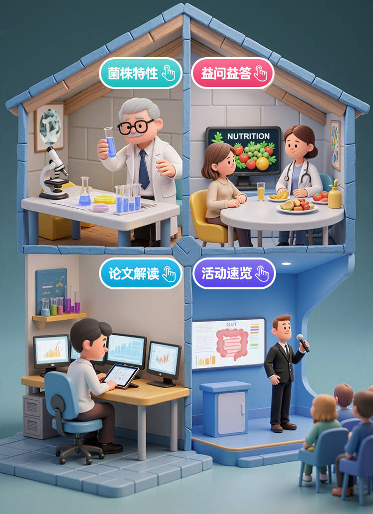 今年值此世界肠道健康日之际,养乐多“菌衡家”小程序全新推出“科学小屋”虚拟空间。通过四大板块“菌株特性”、“益问益答”、“论文解读”、“活动速览”的内容展现,汇聚乳酸菌科普与研究循证的强大力量,致力于打造一个科学科普并进的学术交流平台,诚邀大家一起来互动体验。