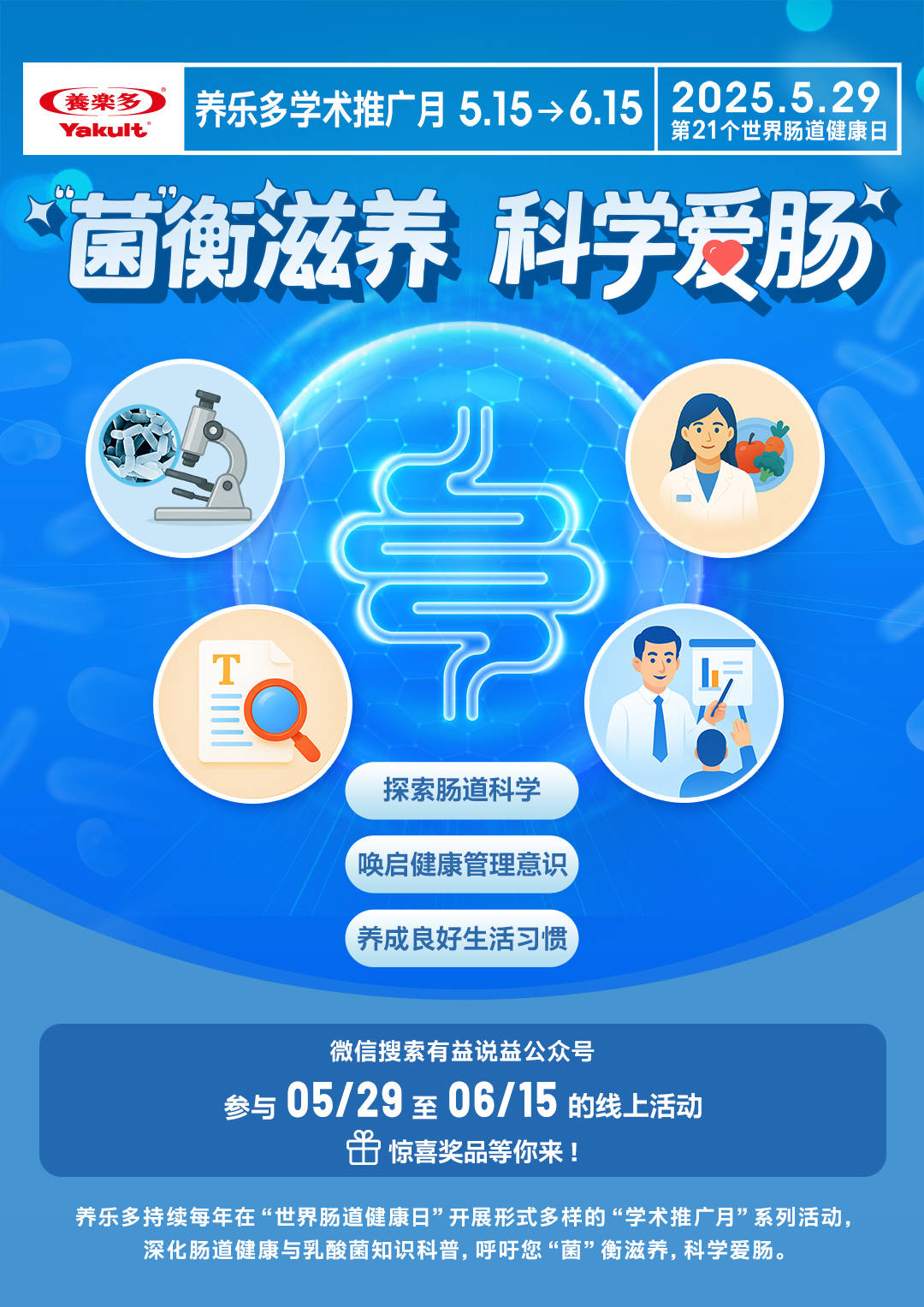 自2010年起,养乐多便紧密围绕“世界肠道健康日”这一重要概念,积极开展形式丰富多样的科普活动。近年来推出的“学术推广月”主题活动通过传播肠道健康与乳酸菌相关知识,积极呼吁公众关注肠道健康,为提升全民健康素养贡献力量。