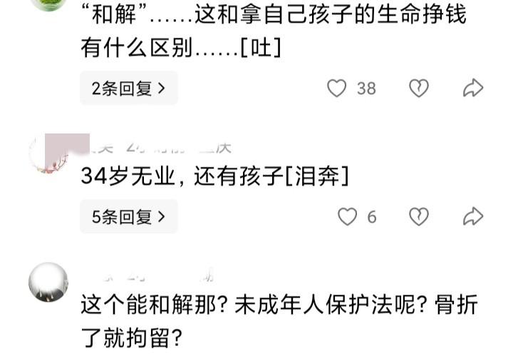 就说如果这个女的没有付出大代价,也不会这么轻易的和解,要知道都给人家孩子打骨折了,而且脸上身上一顿给打的,且不说对孩子造成身体上的伤害,在孩子幼小的心里里也是一道创伤。