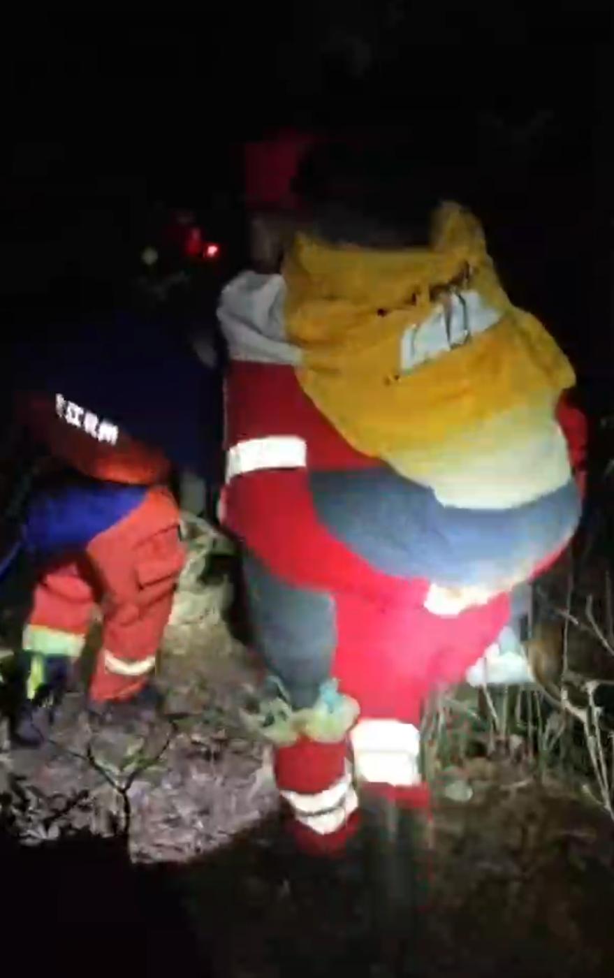 由于地形复杂,天色渐浓、视线受阻,救援难度逐渐加大。