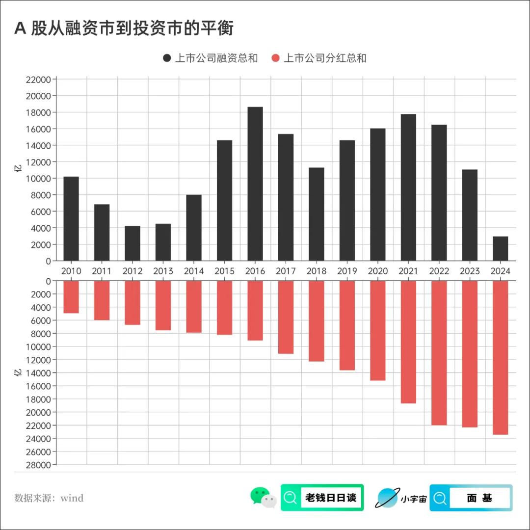 曾经大家对A股最大的诟病便是,融资远大于分红,公司向股东要的远大于公司回馈给股东的,流出去的钱远大于流进来的钱。
