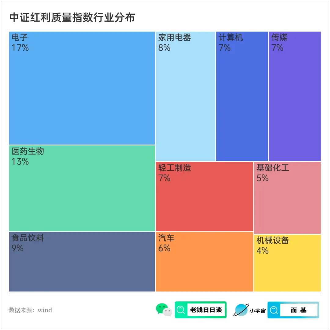 比如电子行业,这个行业通常意义上被认为是波动较大、融资需求较多,自由现金流较少的行业,但红利质量指数在电子里面选取的公司却也都有着其独特的价值。