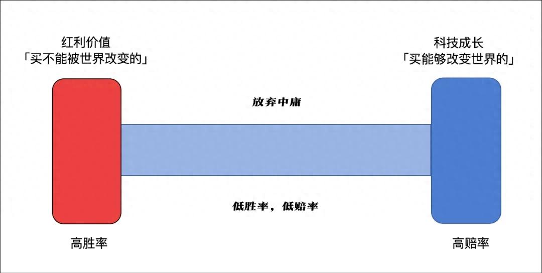 对于分散配置,我们曾经提出过一个哑铃配置的思路,抓两头,抓极端,放弃中庸,拥抱极致。要么是极端的股东回报,要么是极端的创新成长,内啡肽的红利加上多巴胺的科技。今年以来这个组合的收益表现也令人满意,科技成长贡献高弹性回报,红利价值提供稳健收益。