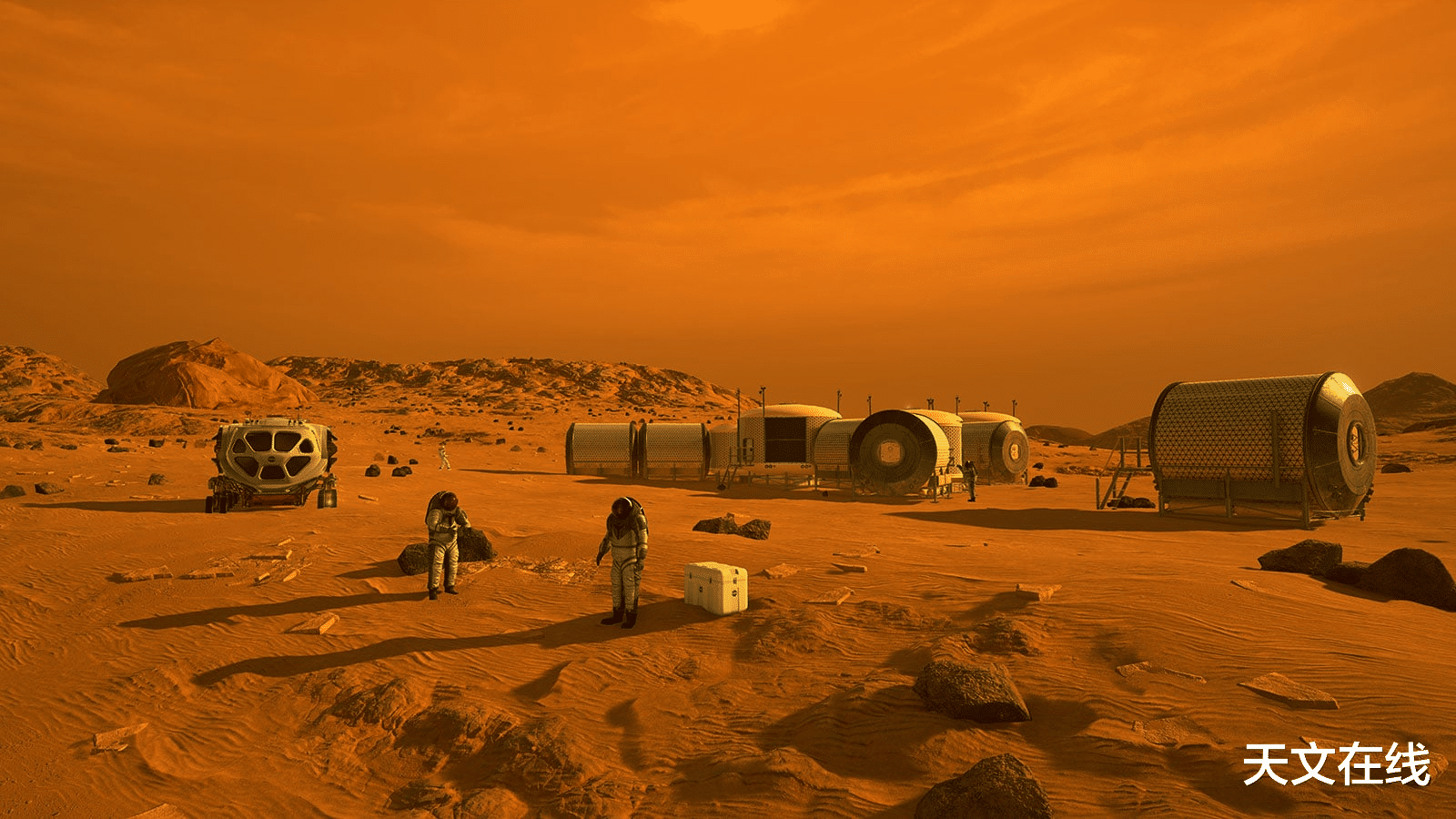 在火星表面栖息地外工作的宇航员。来源:美国国家航空航天局