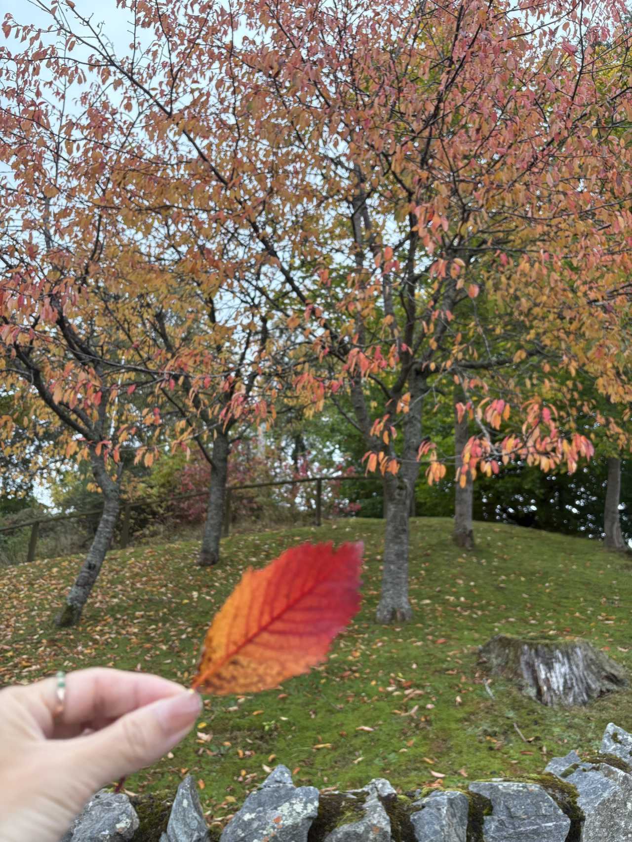 一叶知秋,红色绿色飘摇欲坠,阵阵冷风让我只想钻进车里取暖。