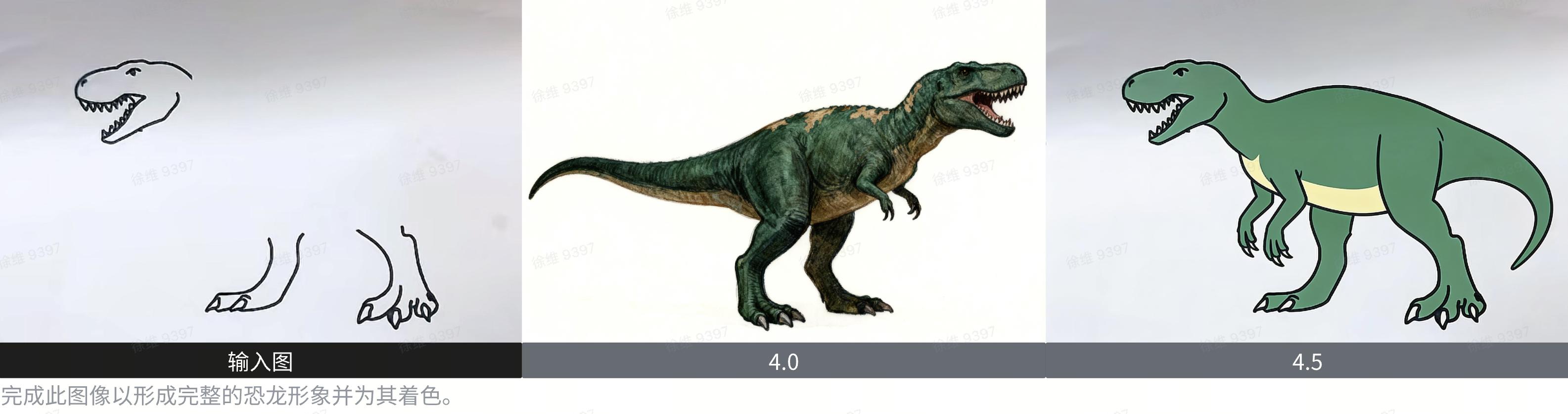 4️⃣编辑准确度(图生图)更强这里原来文案里有个口误叫“边辑”,其实是编辑还原度。输入一张原图,4.5 生成的重绘结果,在保留原图特征的基础上,融合得更完美,更接近我们想要的“微调”效果,而不是改得面目全非。