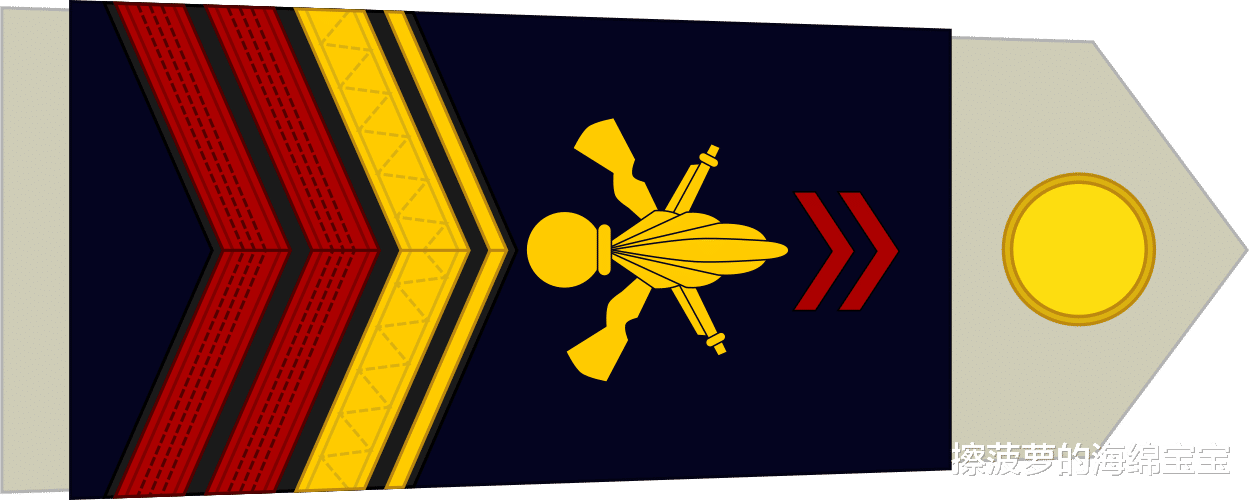 副官长(Adjudant-chef):下图为步兵军衔,骑兵军衔条纹为银色